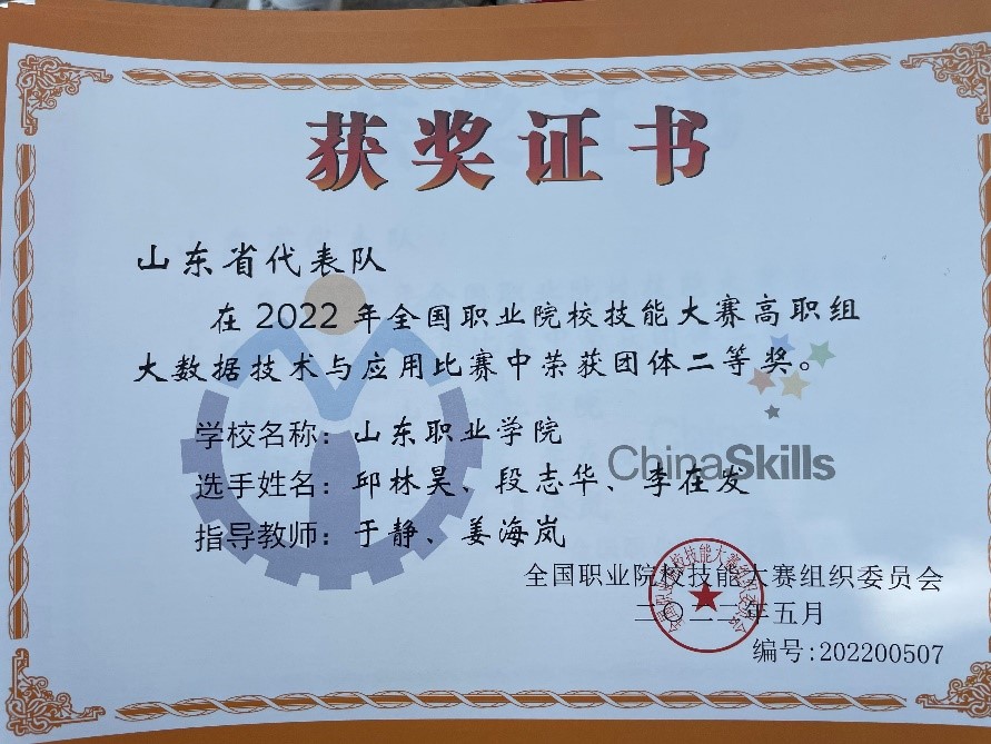 2022年7月28日至31日,由教育部、重庆市人民政府等主办的2022年全国职业院校技能大赛(高职组)“大数据技术与应用”赛项在重庆工商职业学院举办。我校新一代信息技术产业学院团队,从全国30个省(市、区)的60支参赛队中脱颖而出,取得二等奖的好成绩。