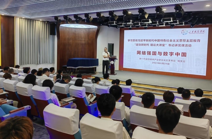 为扎实开展学习贯彻习近平新时代中国特色社会主义思想主题教育,进一步增强党组织的凝聚力、战斗力和号召力,6月29日新一代信息技术产业学院党总支书记兼院长杨文虎在三号教学楼音乐厅开展了一次“建功新时代 理论大讲堂”活动,全体教职工及学生代表100余人参加了本次党课学习。