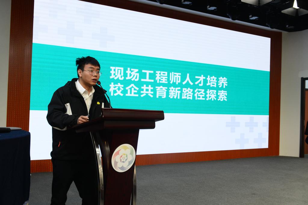 揭牌仪式后,蒋慧总监为现场师生带来了一场关于《现场工程师人才培养—校企共育新路径探索》的精彩报告。他深入剖析了信息技术行业的人才需求趋势,并强调了校企双方在人才培养中的重要作用。报告内容深刻、见解独到,赢得了在场师生的热烈掌声。