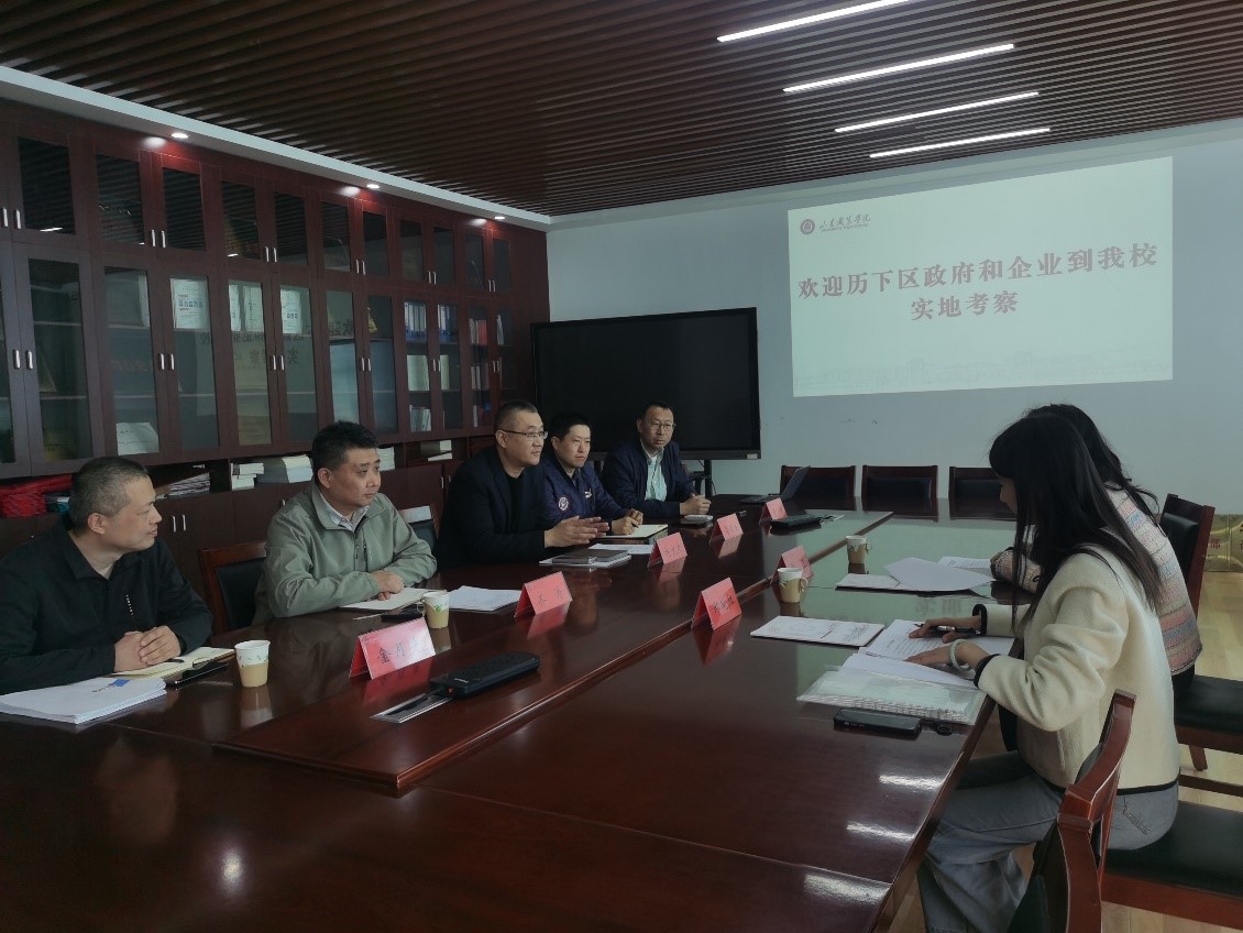 为深化产教融合,助力济南市科技企业高质量发展,2025年4月3日,济南市历下区趵突泉街道办领导周正、海看网络科技股份有限公司领导邢艳红一行到访我校,就新一代信息技术产业学院科技副总选聘工作开展实地考察。我校新一代信息技术产业学院院长杨文虎、学校科技处处长齐涛及相关负责人陪同考察并座谈。双方围绕校企合作、人才培养、科技成果转化等议题深入交流,共绘合作蓝图。