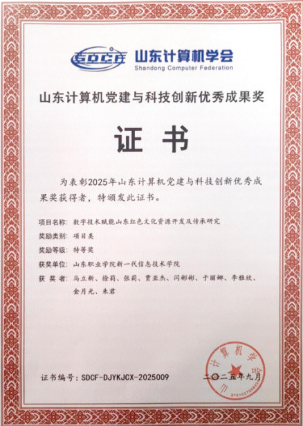 此次获奖既是对我校现有成果的肯定,更是未来发展的动力。展望未来,我校新一代信息技术学院将以获奖为起点,深化红色文化与数字技术融合研究,巩固优势领域;同时依托年会交流平台,加强与省内高校协作,加快成果转化,培养更多高素质复合型技术技能人才。在山东计算机学会党建与科技创新工委的统筹下,我校也将持续为山东党建科创事业、地方数字经济发展贡献更多力量。