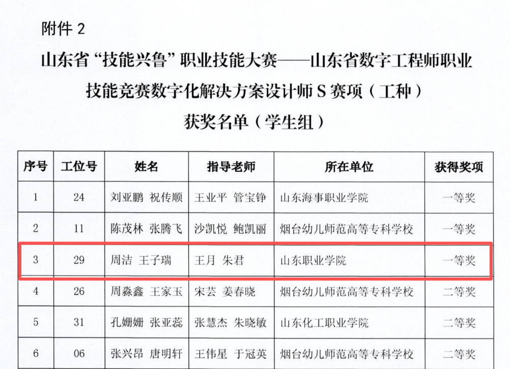 2025年10月18日-19日,山东省“技能兴鲁”数字化解决方案设计师S赛项在山东海事职业学院举办。经过4小时的紧张比拼,我校新一代信息技术学院周洁、王子瑞两位同学,凭借扎实的技术功底、创新的解决方案与高效的团队协作,荣获学生组一等奖。