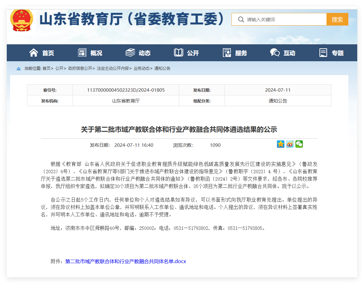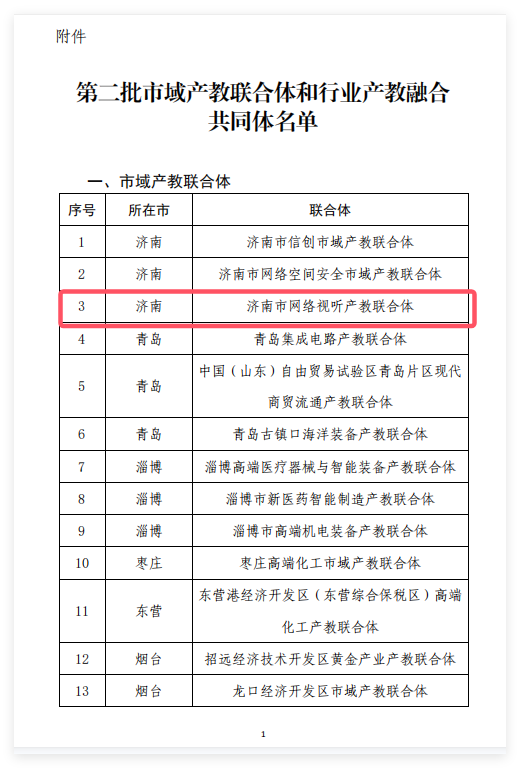 热烈祝贺我校与济南长清大学城管理委员会、北京安博大成教育科技有限责任公司、济南西城软件园服务有限公司牵头成立的济南市网络视听产教联合体成功入选山东省第二批市域产教联合体!
