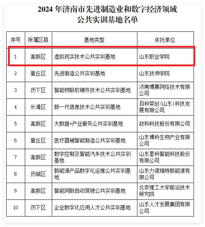 济南市工业和信息化局公布了2024年济南市先进制造业和数字经济领域公共实训基地名单,热烈祝贺我校申报的《虚拟现实技术公共实训项目》获准立项!