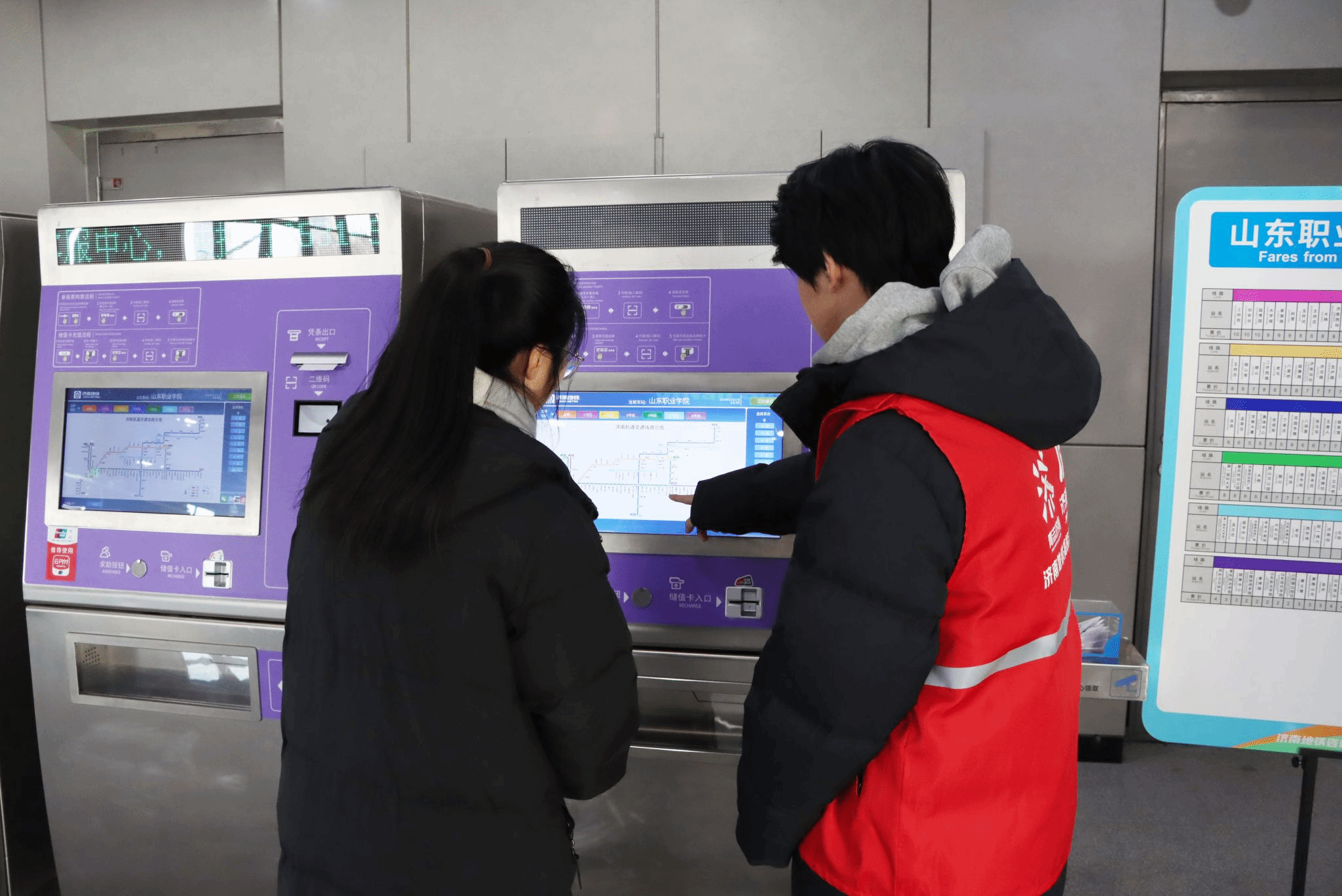 2025年12月27日以来,济南地铁4号线、8号线及济阳线有轨电车相继开通运营。我院选派“轨交护航”志愿服务队的122名学生志愿者,在沿线各站点,以专业热忱的服务为新线顺畅启航筑牢保障,成为泉城地铁里一道亮丽的青春风景线。