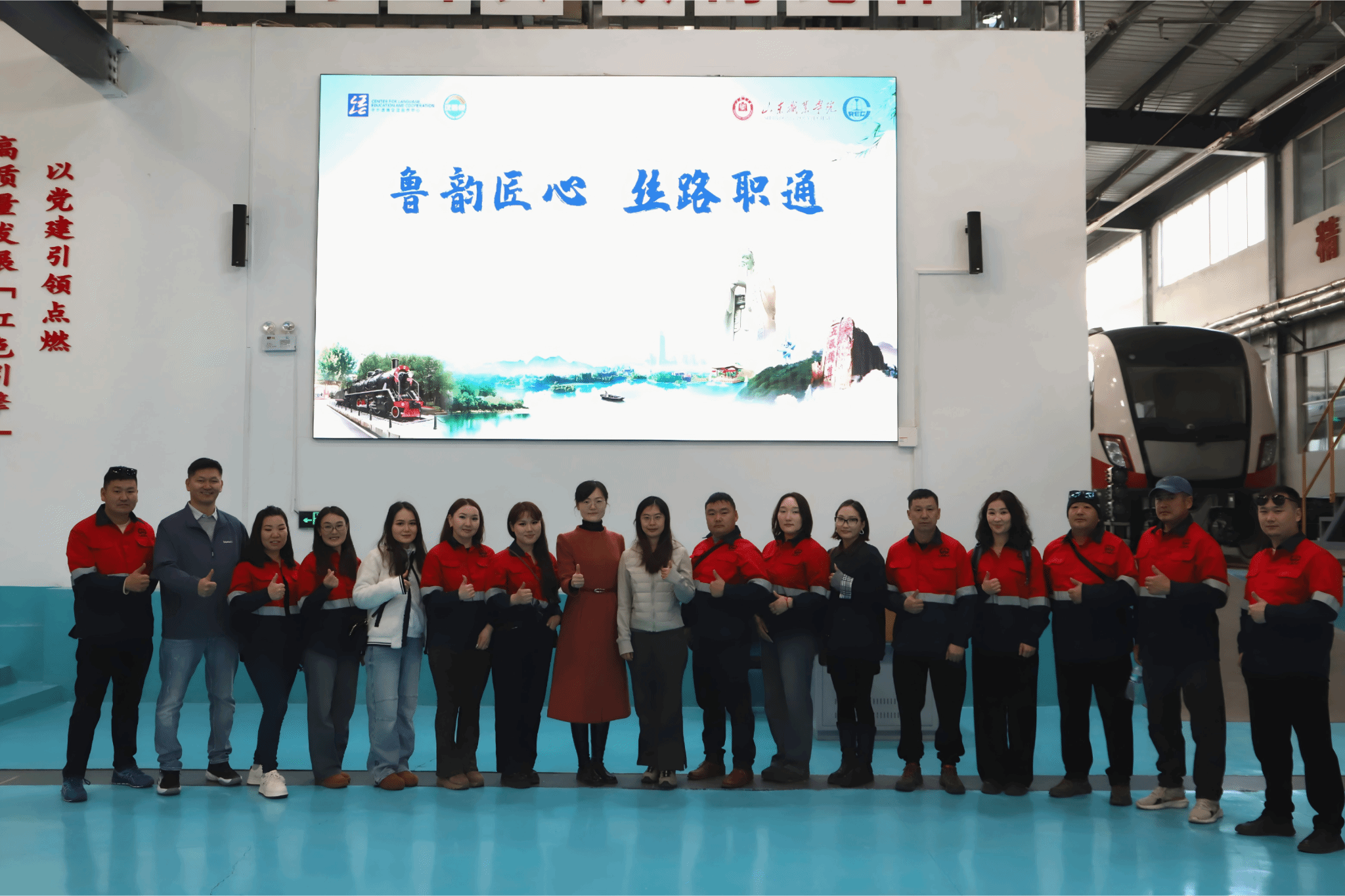12月9日,“鲁韵匠心·丝路职通”汉语桥团组交流项目遴选学校蒙古中铁资源新鑫有限责任公司中文工坊的优秀学员代表,来到城市轨道学院进行职业技能学习与实践。