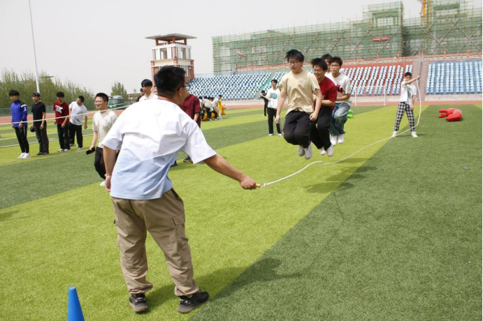 本次运动会坚持传统体育与现代趣味相结合,在现代趣味项目中,“一圈到底”的呼啦圈在同学们交握的手臂间默契流转,“跳大绳”的节奏中跃动着精准配合的韵律,“旋风跑”的急转变向与“毛毛虫竞赛”的统一步伐,将团队协同演绎出不同的精彩。在传统体育项目中,投壶区的同学们屏息凝神调控抛掷弧线,射箭场上的同学弓弦轻颤间尽显发力平衡的智慧,古风体育的雅趣与竞技性在欢声笑语中淋漓展现。