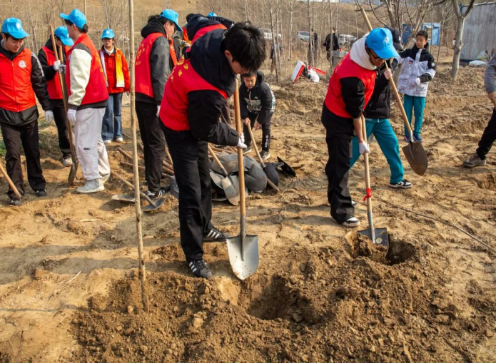 早上9点,志愿者们一到达黄河北岸鹊山南侧的植树场地,就积极投入到活动的各项准备工作。他们身着志愿服,维持现场车辆秩序,确保活动顺利开展。同时,志愿者们还协助大众网组织的植树单位搬运树苗、分发铁锹和水桶,为植树活动的顺利进行提供了有力保障。在准备工作完成后,志愿者们也迅速加入植树队伍,与各单位人员一同投入到植树工作中。 志愿者们分工协作,挖坑、扶苗、填土、踩实、浇水,植树过程井然有序。经过志愿者们的一番努力,一棵棵新栽的树苗在黄河岸边挺立,为黄河流域的生态建设增添新绿。