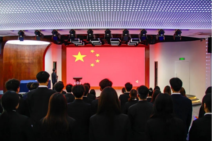 入团仪式在庄严的《义勇军进行曲》旋律中拉开序幕,全体团员肃立高唱国歌,激昂的歌声饱含青春热血与报国之志。
