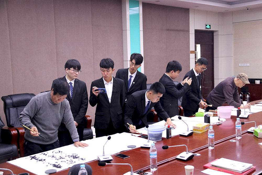 活动伊始,师生交流了学习书画的经历及体会,就书画创作进行了理论层面的探讨交流。张世体指出练习书法是为了丰富精神世界,也是人生精神的更高追求。彭玮为同学们学好书法提出了三点要求:一要苦练,追求纯熟技法;二要不逾法度,和而不同,违而不犯;三要发扬汉字的艺术特色,写出自己的特点。