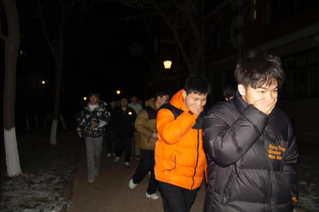 12月16日晚,东岭书院组织了夜间消防应急疏散演练,书院全体学生参加。