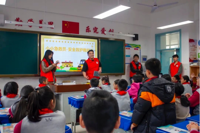 活动中,志愿者们详细介绍了急救的定义、重要性以及常见意外伤害的处理方法,并针对火灾、地震等突发灾害,讲解了逃生避险和自救互救技巧,强调了心肺复苏“黄金4分钟”的重要性,让孩子们认识到急救的紧迫性。