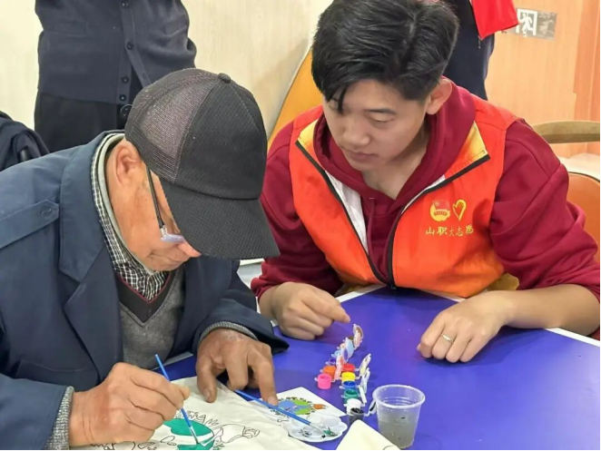 创作环节结束后,志愿者们还为老人们献上了精彩纷呈的才艺展示。一曲吉他弹唱悠扬响起,旋律中饱含深情,现场瞬间被欢声笑语所充盈,弥漫着温馨和谐、其乐融融的气氛。
