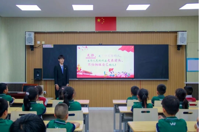 理论宣讲环节,志愿者们向小学生介绍了中国少年先锋队的历史、名称含义及先锋模范人物事迹,阐释了“先锋”作为榜样和前进力量的象征意义,使孩子们对中国少年先锋队的政治属性和光荣使命有了深刻理解,进一步加深了对中国少年先锋队历史和精神的认识,激发了对加入中国少年先锋队的向往。