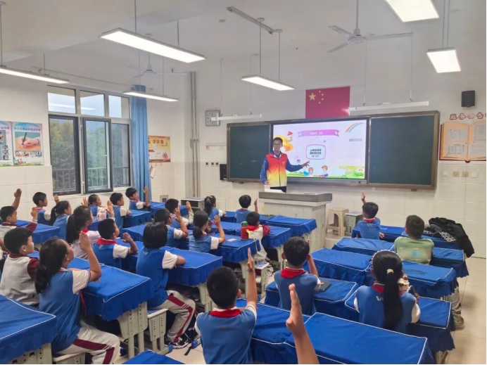 志愿者们围绕爱国教育、交通安全、保护环境、网络安全四大主题,为小学生们送上了一堂生动有趣的课程。 首先,志愿者们向小学生们讲述历史故事,展示英雄人物事迹,并带领小学生们一起奏唱国歌《义勇军进行曲》,进一步激发他们的爱国热情和民族自豪感。随后,志愿者们通过生动的讲解和实例展示,向小学生们介绍了各种环境问题的种类和特征,让他们深刻认识到保护环境的重要性;接着详细阐述了交通信号的含义和注意事项,提升了他们的交通安全意识;并科普了网上交友和冲浪的安全常识,帮助他们树立正确的网络安全观念。