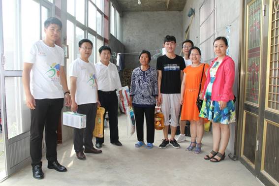 为传播食品科学文化知识,增强农村地区对毒品和艾滋病的了解,便于提高村民自我保护能力, 7月12日,系党总支书记王广勇带领由五名教师及六名志愿者组成的实践服务队走进临沂徐家岭村、前小炉村开展贫困生走访工作和以“共撑安全伞”为主题的食品安全禁毒防艾宣传。此次活动走访了徐家岭村张富雪、前小炉村李扶军两名同学的家,老师们为家庭经济困难学生家带来了米、面、油等生活物品,了解贫困生家庭情况、生活状况、住房条件和生活来源,并向学生家长详介绍了学院情况及学生在校表现。王书记向给家长介绍了国家、学院的各类资助扶持政策,鼓励贫困学生要在逆境中树立自信、磨砺人生、奋发图强。此次走访,体现了学校对家庭经济困难学生的关怀,通过实地查看深入了解了学生的家庭状况,为精准扶助提供依据,并增进了家长对学校的了解,利于共同努力帮助学生顺利完成学业。