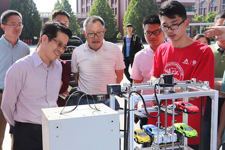 参加此次创新成果展的领导们观看了学生科技制作、科研成果、创新成果等展览,认真听取了各个作品的讲解,观看了作品功能展示,并高度赞扬了学生在科技创新活动取得的成绩。