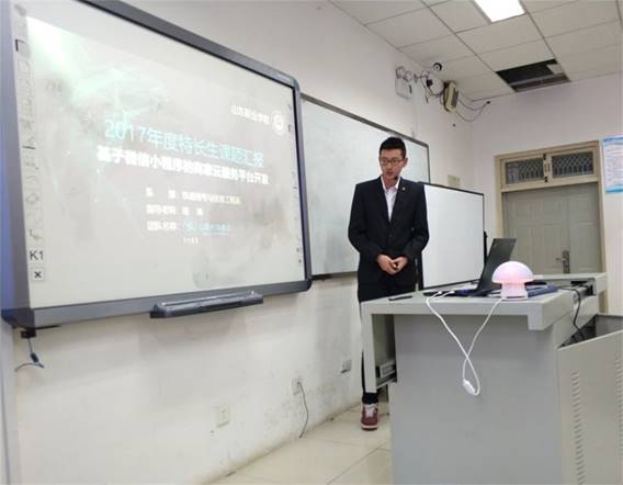 展示会上特长生成果作品从口袋校园微信小程序开发、网络游戏开发、平面图形图像设计、二维动画制作、三维动画制作到轨道模拟盘故障查找,可谓五花八门、各有特色。
