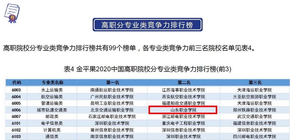 近期,“金平果”首次发布了高职专业排行榜,包括全国1429所高职院校19个专业大类、99个专业类和731个专科专业的综合实力分布情况,以及对全国各地区、各高职院校的专业总体实力的评价和分析。