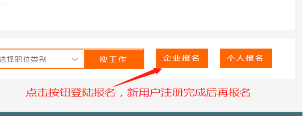 用人单位根据岗位需求进入相关专场,点击【企业报名】按钮登陆账号报名即可,新用户需要先注册发布招聘信息,完成后再进行报名。