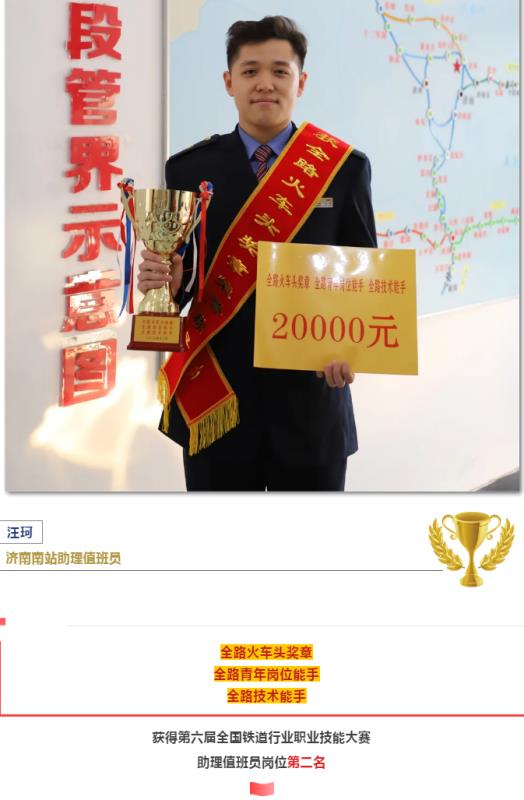 目前,在第六届全国铁道职业技能大赛中,来自山东职业学院的优秀毕业生汪珂获得助理值班员综合排名第二名。这也是中国铁路济南局集团有限公司职工在该岗位、组别竞赛中取得的历史最好成绩。为我们山东职业学院的优秀毕业生喝彩。