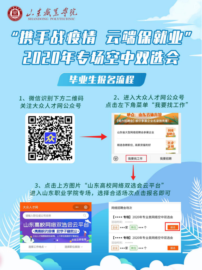 山东职业学院2020年11月份专场空中双选会毕业生报名流程