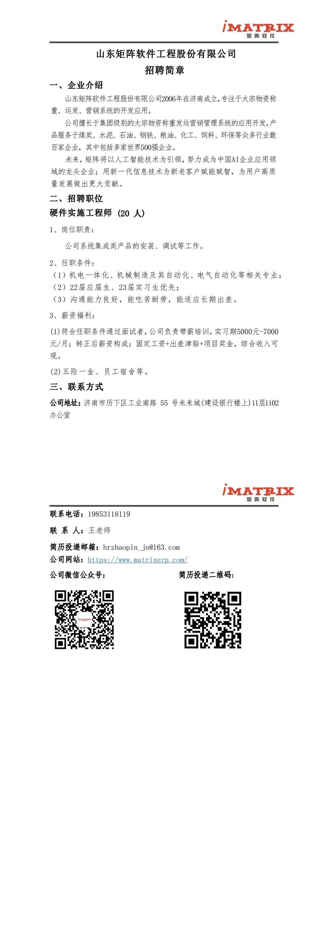 山东矩阵软件工程股份有限公司招聘简章