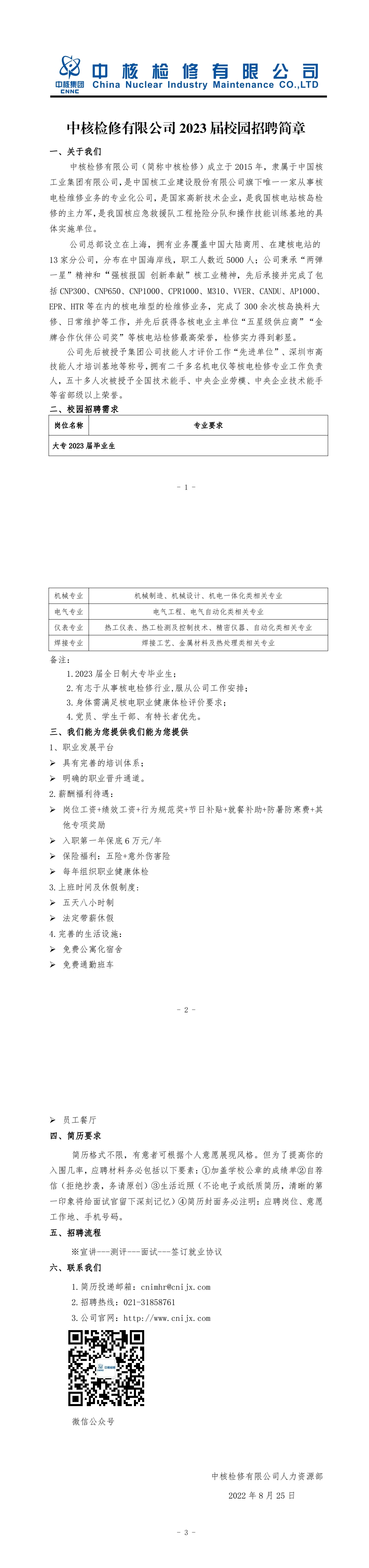 中核检修有限公司2023届校园招聘简章