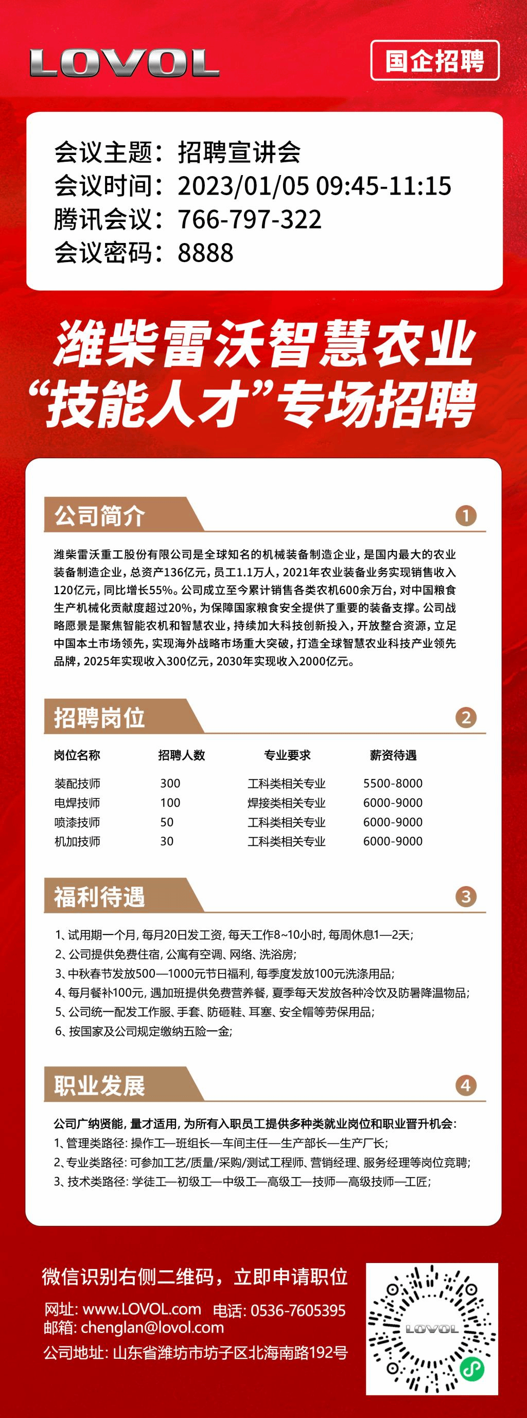潍柴雷沃智慧农业“技能人才”专场招聘