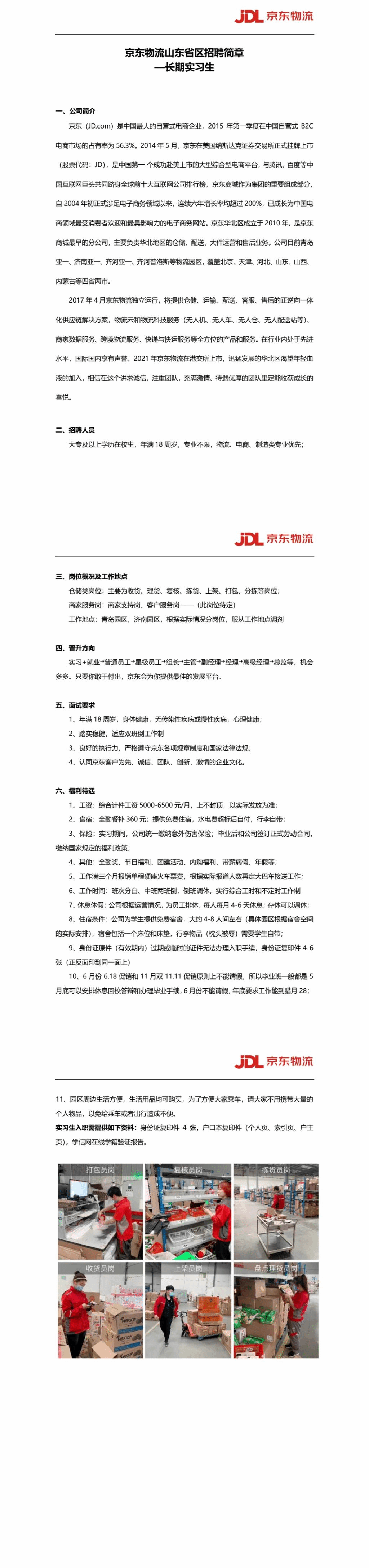 京东物流山东省区招聘简章-长期实习生