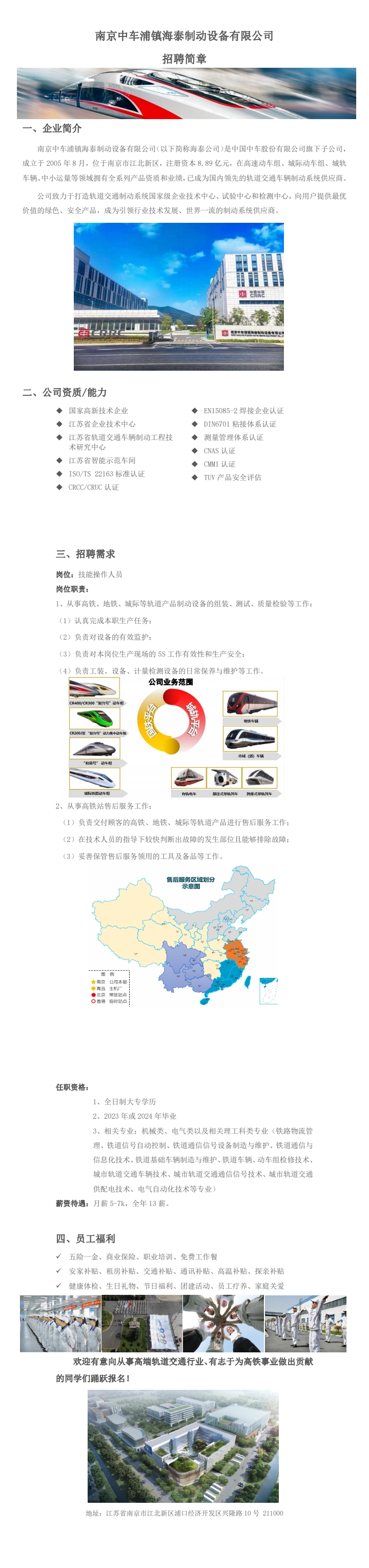 南京中车浦镇海泰制动设备有限公司招聘简章