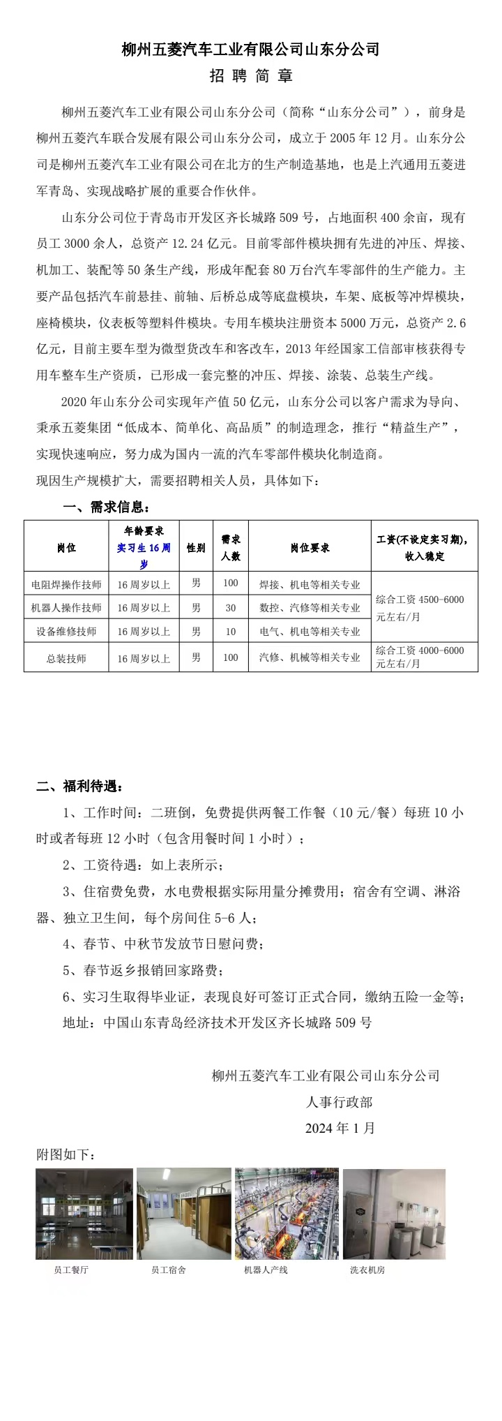 柳州五菱汽车工业有限公司山东分公司招聘简章