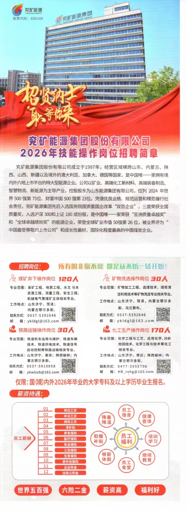 兖矿能源集团股份有限公司2026年技能操作岗位招聘简章
