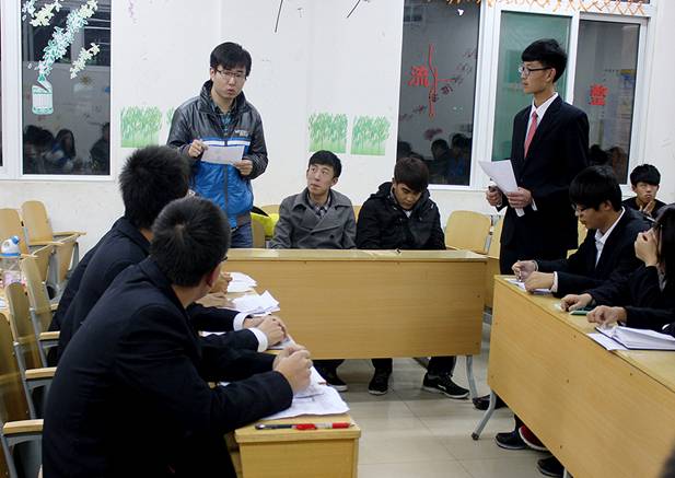 首先进行的开篇立论,正、反方一辩开门见山地阐述了各自的观点,接下来的攻辩环节,正、反方二、三辩选择对方二、三辩进行一对一攻辩,双方你来我往,场上火药味十足。在攻辩小结,双方一辩对刚才的攻辩进行总结,并指出了对方言辞中出现的漏洞,同时巩固本方的观点。在自由辩论环节中双方都旁征博引结合各种事例论证自己的观点,双方的精彩表现赢得观众阵阵掌声。最后,双方进行总结陈词,双方四辩总结对方的错误,重申本方的观点。最终,经过评委的裁定,电信1332班获得辩论赛冠军,电铁1334班杨小慧同学获最佳辩手称号。