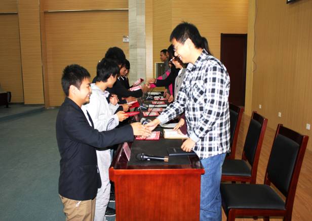 大会在庄严的《国歌》声中拉开帷幕。2011届学生干部代表董信通发言,对2011届学生工作作出总结,并对新一届学生干部们寄予希望。希望新一届学生干部能在领导和老师的带领下为电气系取得更加辉煌的成绩。随后,李亚飞宣读了2012届学生干部名单,并向新一届学生干部颁发聘书。2011届团总支副书记杨康颖带领全体2012届学生干部宣读就职誓词。