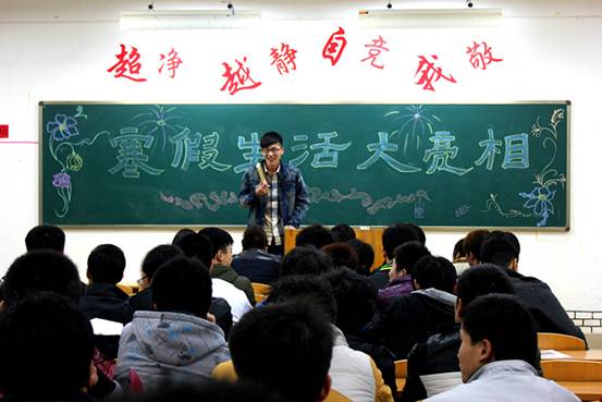 在各班班长和团支书的精心准备和组织下,班会在一片愉悦氛围中进行,同学们轮流上台讲述自己的寒假生活,同时也对自己的寒假社会实践作业做了一个总结。在寒假短短的一个月中,有的走访了中学母校,有的齐聚老友谈天说地,有的则在外兼职,并在实践活动中掌握了在学校中学不到的技术,拓宽了自己的视野,同时也缩短了理论与实践的距离,提高了自己的综合素质,为将来投入社会打下坚实的基础。