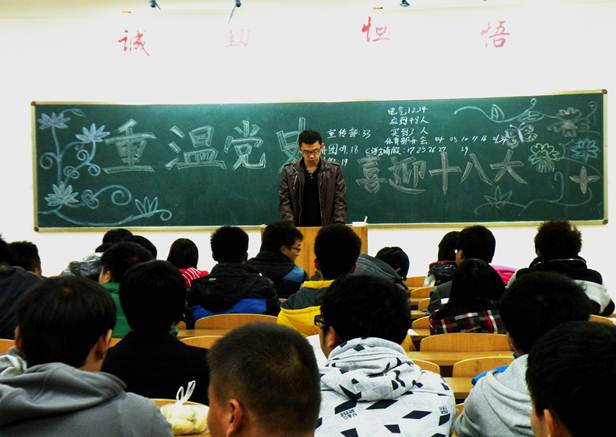 十一月正值金秋,是欢乐与收获的季节。全国人民热切期盼的中国共产党第十八次全国代表大会也在十一月即将召开。作为当代大学生,更应以新面貌、新成绩来迎接这一盛会。11月6日晚,电气工程系组织各班开展了“重温党史,喜迎十八大”主题班会。