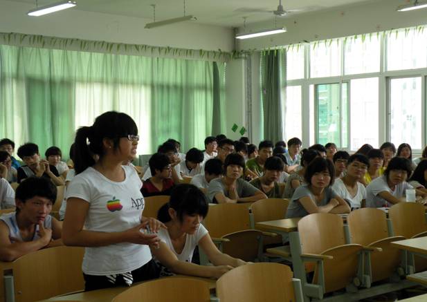 针对就业问题,在场同学分别从就业方向、大学生应怎样克服懒散、浮躁的心态等问题进行了提问,八位优秀毕业生做出了详细的解答,大家掌声不断。