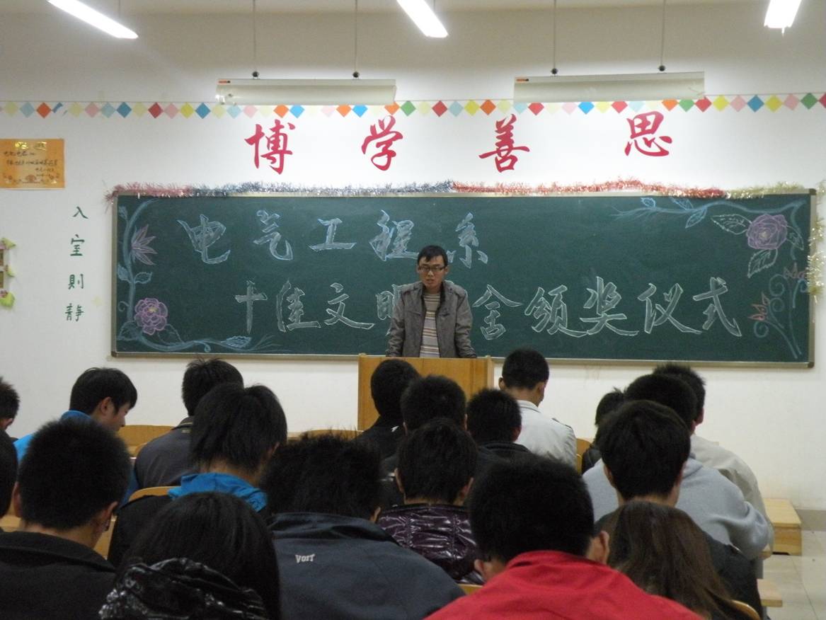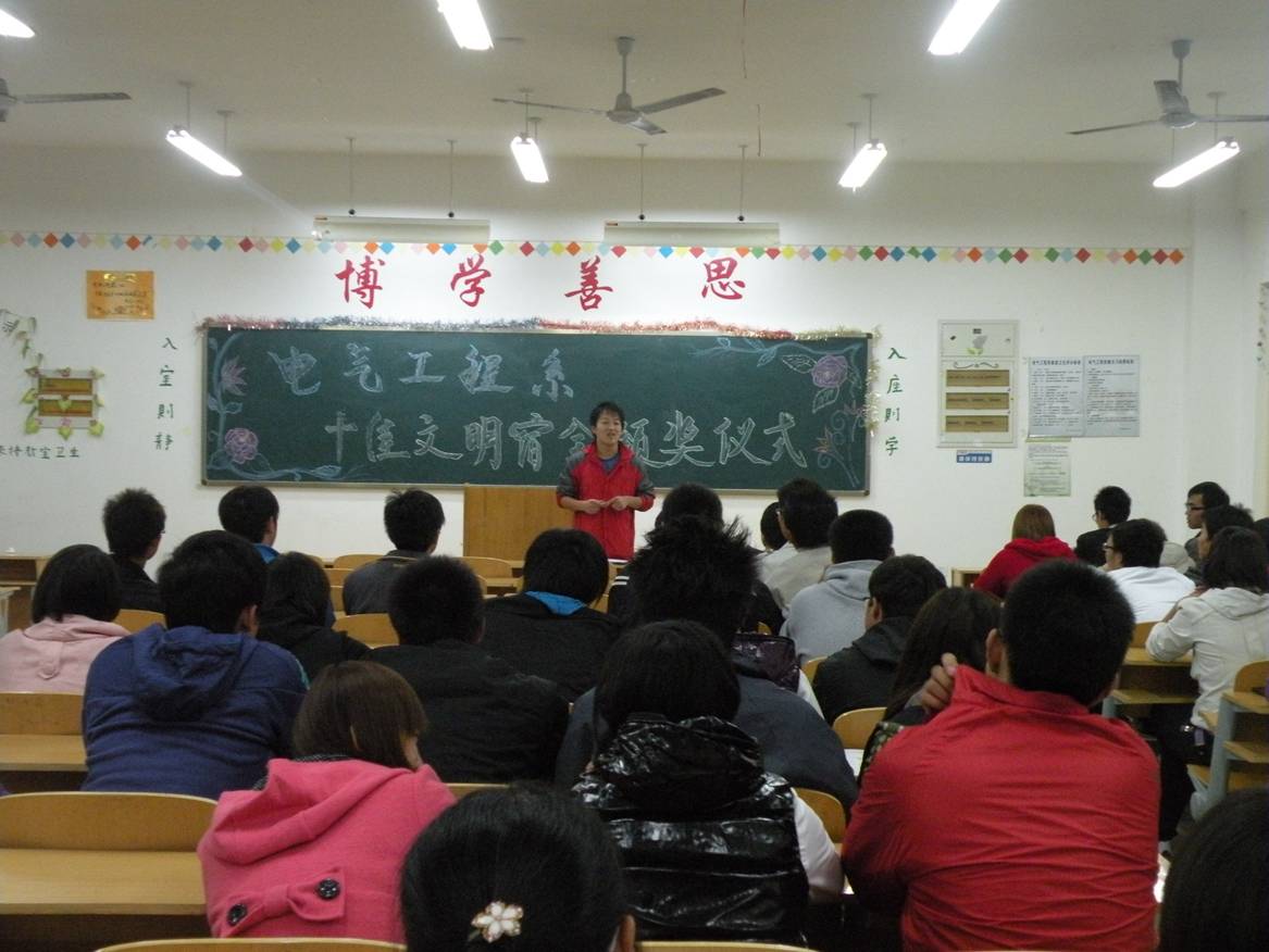 11月7日下午6点,在A502教室,电气工程系全体舍长和自律会干部汇聚一堂,隆重举行了十佳文明宿舍评比活动颁奖仪式。