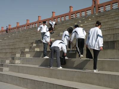 实践活动中,该期学员在培训班班长张骞的带领下,早上八点都各带卫生工具,在餐厅北门集合;按计划分为四组,分别在校园范围内进行有秩序的义务劳动,整个活动过程中,各小组严格执行培训班的纪律要求,根据小组内部计划,积极的在餐厅内外、操场、看台等地方进行了有秩序的打扫和清洁。去除了别人乱贴乱画的小广告,同时还清除了堆积在角落里的垃圾。经过将近三个小时的努力,同学们均表示感受深刻。在改善了校园环境的同时,大家收获更多的是对党的认识和感悟。通过此次活动,同学们不仅深切感受到助人的快乐,而且深刻体会到党的宗旨和以身作则的重要性。