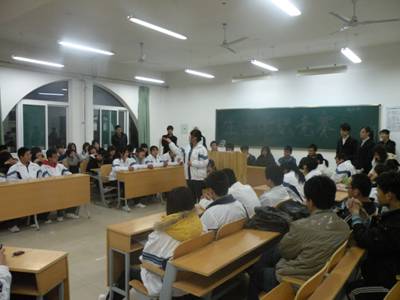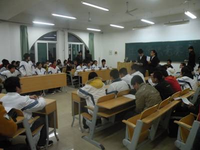 比赛分为必答题、抢答题、猜字秀和风险题四个环节。为了让大家轻松迎战对手,首先由六个班的代表队各自进行才艺展示,通过活跃现场气氛来让选手迅速适应现场环境,以便全身心的投入到比赛之中。经过一番才艺展示,同学们的热情空前高涨,各班选手们也在接下来的环节中有了更出色的表现。必答题的机智果断,抢答题的你争我抢,猜字秀的默契配合,风险题的敢做敢闯,每个环节都充分体现了同学们有备而来和必胜的决心。