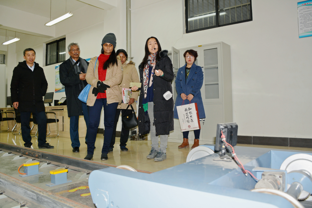会后,斯里兰卡莫勒图沃大学教师代表团参观了机械制造工艺实训车间,现代通信技术综合实训基地、铁路施工技术实训场,轨道交通综合实训中心,信号和控制实验室等,各实训室和演练场所内均由专业教师向来宾用英文做了详细的讲解,讲解精彩,加深了来宾对实训设备、项目教学和教学做一体化的理解。