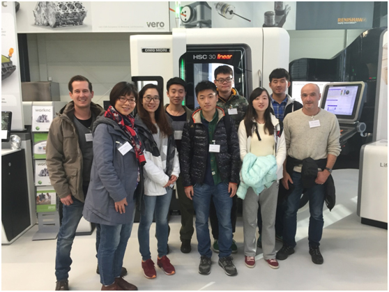 互访师生还参观了德国DMG数控机床的设备展,DMG数控是全球数控技术最领先设备商之一,展会上有数控车床、数控车铣中心、数控三轴铣削中心、数控五轴加工中心等多种设备,师生一行都被DMG设备超高的主轴转速、精密的加工精度、先进的控制技术所震撼。