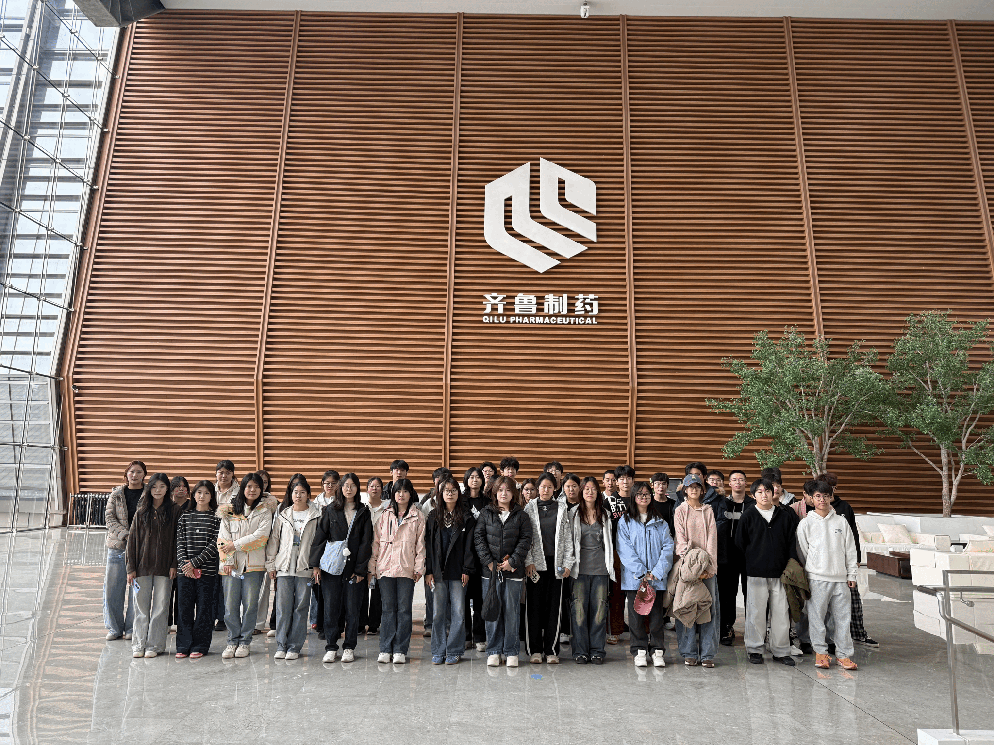 在齐鲁制药集团有限公司,师生一行系统参观了企业展馆和生物医药生产车间。企业相关负责人向学生详细介绍了公司发展历程、核心产品线、科研创新成果及未来产业布局,并结合现场生产线,讲解了药品生产质量管理规范(GMP)实施情况、自动化控制流程及车间管理模式。同学们就药品工艺控制、智能化生产等话题与企业技术人员进行了交流。