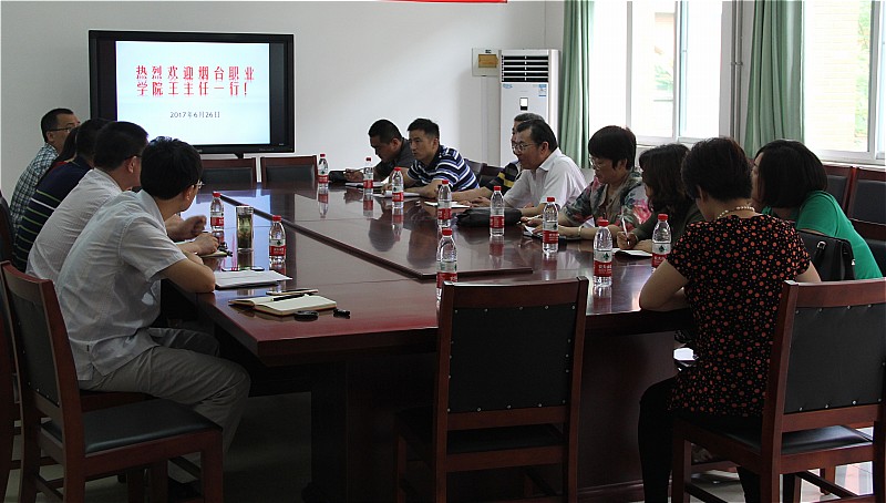 6月26日上午,烟台职业学院机械工程系主任王长东,教学副主任刘建宁等一行8人,来我院交流学习“3+2”对口贯通分段培养教学评估工作。教务处处长于洪永、副处长王少妮、铁道车辆与机械工程系主任庞继伟、副主任高中军接待了来访一行。