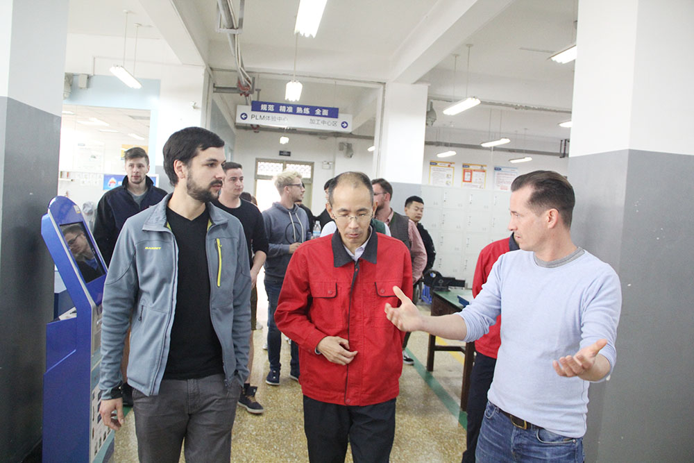 参观实验实训场,亲切沟通促交流。15日上午,访问团在指导老师的带领下,翻译员的陪同下,参观了9号楼铁道车辆综合实训车间,7号楼数控仿真系统实训室、液压与气动实训室,轨道交通实验实训中心等实验实训场所。参观过程中,交流团学生认真听取了老师的讲解,并表示从中学到了很多知识。随后,交流团师生来到我院校史馆进行参观,在图书馆老师的介绍下,对我院的发展历程有了进一步的了解。