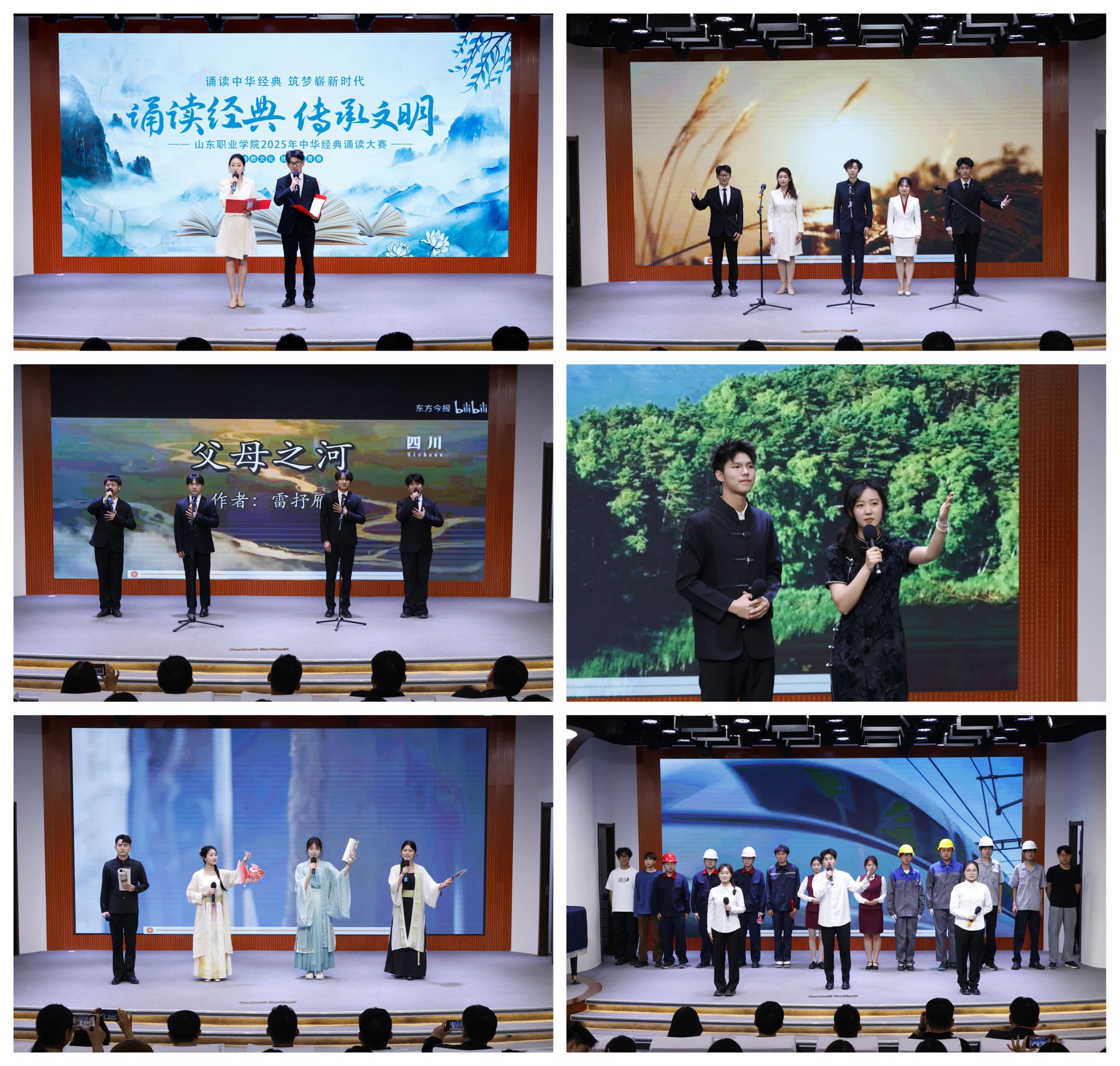 为加大国家通用语言文字推广力度,传承和弘扬中华优秀语言文化,4月23日晚,我校在多功能音乐厅举行了2025年中华经典诵读大赛(决赛)。本次比赛由人文与基础教学部主办,团委、体育美育教学部、各书院协办,邀请山东教育卫视大型活动部主任韩明、山东省朗诵艺术家协会会员王智勇(原山东广播电视台播音主持人)、人文与基础教学部主任王伟、教师司晓辉,以及校团委老师周文豪等担任评委。