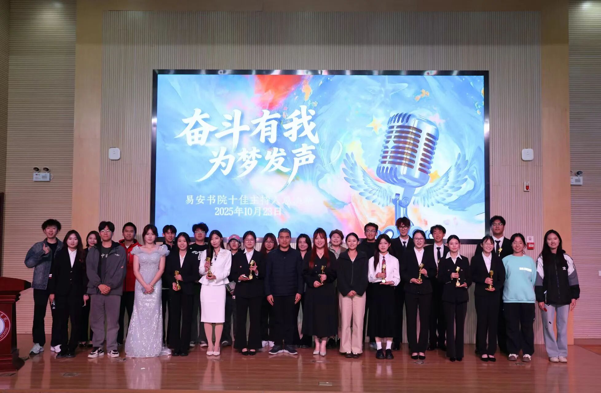 10月23日晚,“奋斗有我,为梦发声”十佳主持人大赛决赛在东报告厅举行。书院团总支书记孙梅玲、部分辅导员及200余名学生共同观看比赛。决赛围绕“声入人心”主题,设置“个性风采展示”“专业功底呈现”“即兴主持挑战”三个环节。选手们凭借流畅的表达、稳健的台风和灵活的应变能力,赢得了现场观众的阵阵掌声。比赛间隙穿插的舞蹈表演、诗歌朗诵《奋斗有我为梦发声》和歌曲《我是如此相信》等节目,进一步丰富了活动内容。经评选,谢安宁获一等奖,李佳营、张雨获二等奖,杨蕊等3人获三等奖,刘丽阳等4人获优秀奖。
