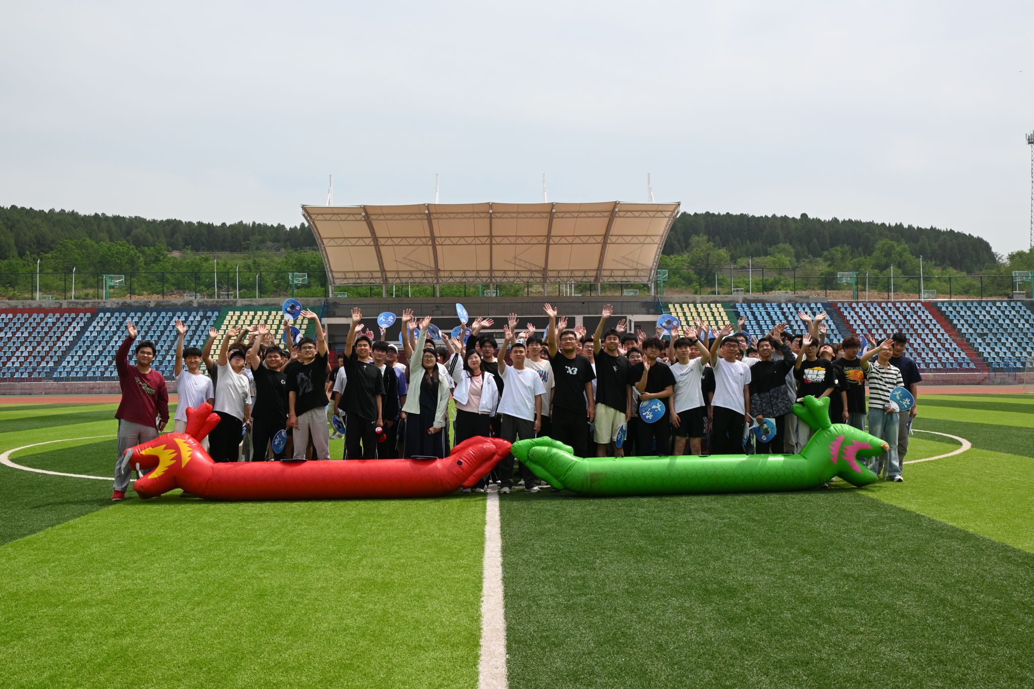 本次运动会将创新玩法与团队协作深度融合,共分“无敌风火轮”“毛毛虫竞速”“众星捧月”“摸石过河”“多人多足”五个游戏项目。队员们精神抖擞、配合默契,每个队伍都齐心协力、奋勇争先,沉浸在这场充满趣味的运动盛会中,每一个瞬间都定格成了美好的回忆,场边的加油声、欢呼声此起彼伏。