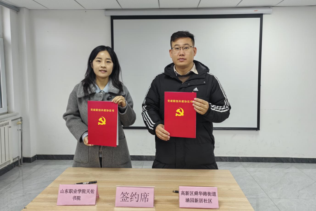 活动中,涵园新居社区党支部介绍了社区概况与共建活动的初步想法,天佑书院党总支书记、院长陈海燕介绍了书院的情况及未来合作共建意向。随后,参会人员一同参观了社区办公场所及已有活动场地,围绕党建创新、基层治理、青少年教育服务等方面展开深入交流,分享宝贵经验,碰撞共建火花。最后,天佑书院第一、第二党支部分别与涵园新居社区党支部签署共建协议。